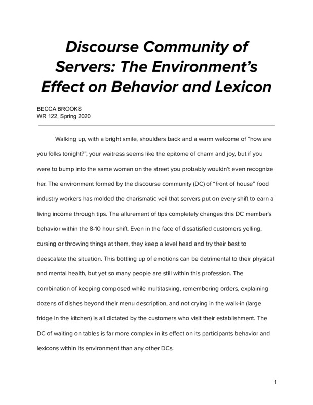 Discourse Community of Servers: The Environment’s Effect on Behavior and Lexicon