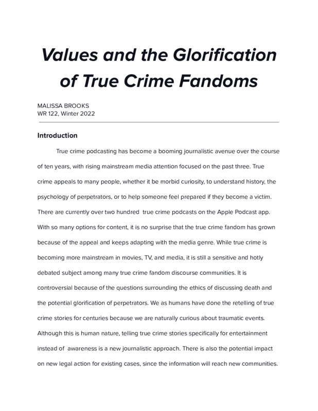 Values and the Glorification of True Crime Fandoms