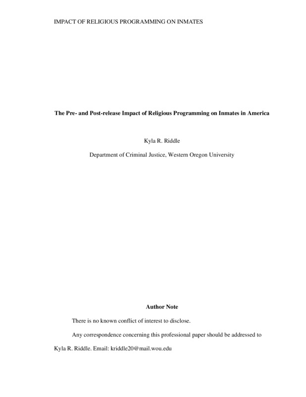 The Pre- and Post-release Impact of Religious Programming on Inmates in America