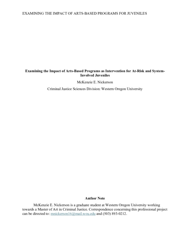 Examining the Impact of Arts-Based Programs as Intervention for At-Risk and System-Involved Juveniles