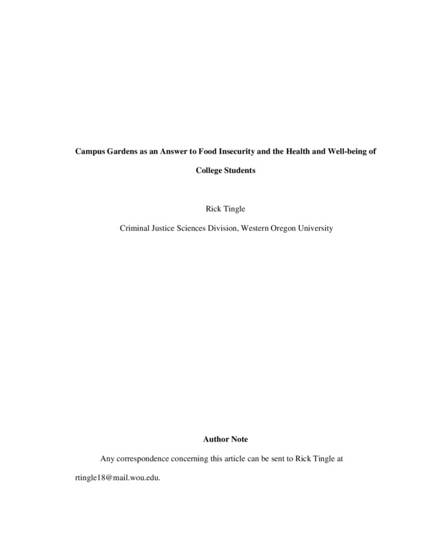 Campus Gardens as an Answer to Food Insecurity and the Health and Well-being of College Students