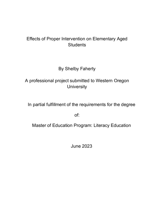 Effects of Proper Intervention on Elementary Aged Students