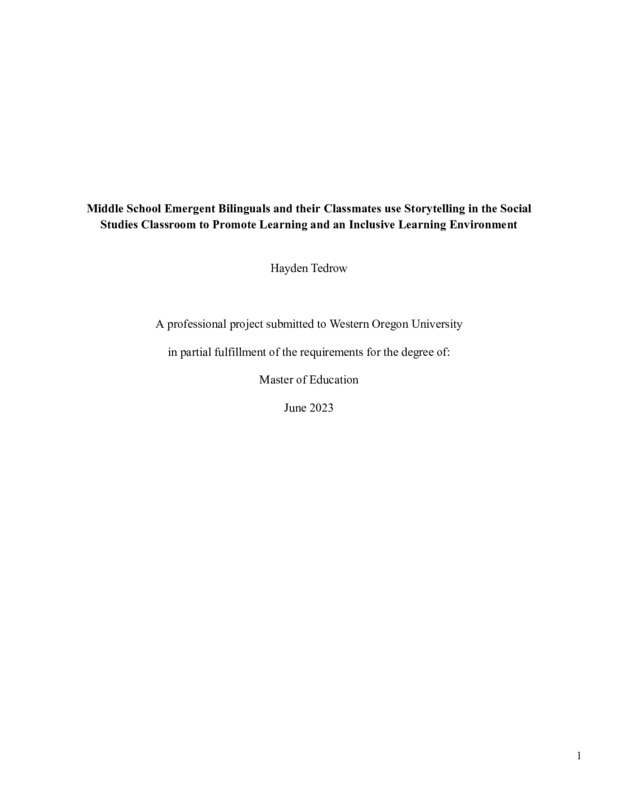 Middle School Emergent Bilinguals and their Classmates use Storytelling in the Social Studies Classroom to Promote Learning and an Inclusive Learning Environment