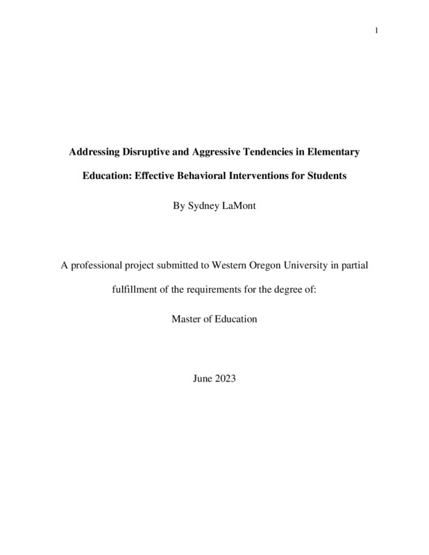Addressing Disruptive and Aggressive Tendencies in Elementary Education: Effective Behavioral Interventions for Students