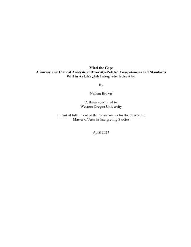 Mind the Gap: A Survey and Critical Analysis of Diversity-Related Competencies and Standards Within ASL/English Interpreter Education