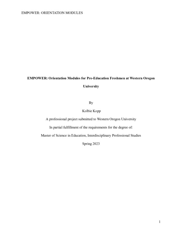 EMPOWER: Orientation Modules for Pre-Education Freshmen at Western Oregon University