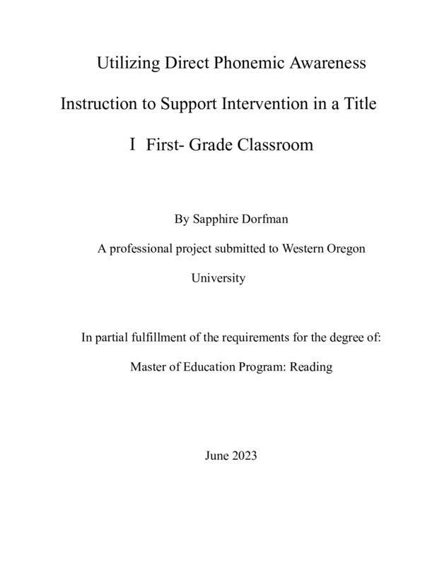 Utilizing Direct Phonemic Awareness Instruction to Support Intervention in a Title Ⅰ First- Grade Classroom