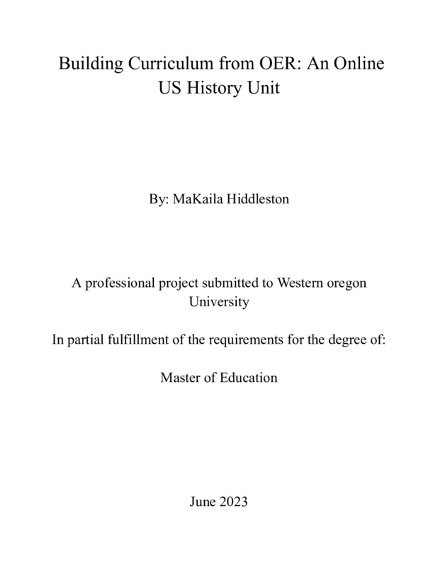 Building Curriculum from OER: An Online US History Unit