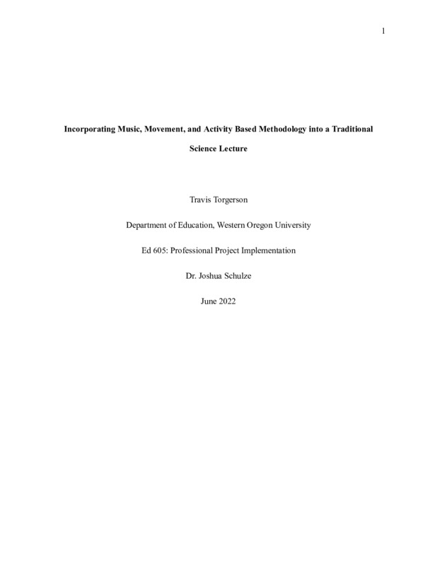 Incorporating Music, Movement, and Activity Based Methodology into a Traditional Science Lecture