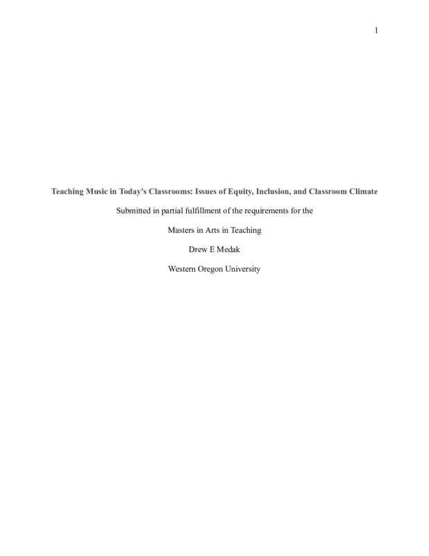 Teaching Music in Today's Classrooms: Issues of Equity, Inclusion, and Classroom Climate