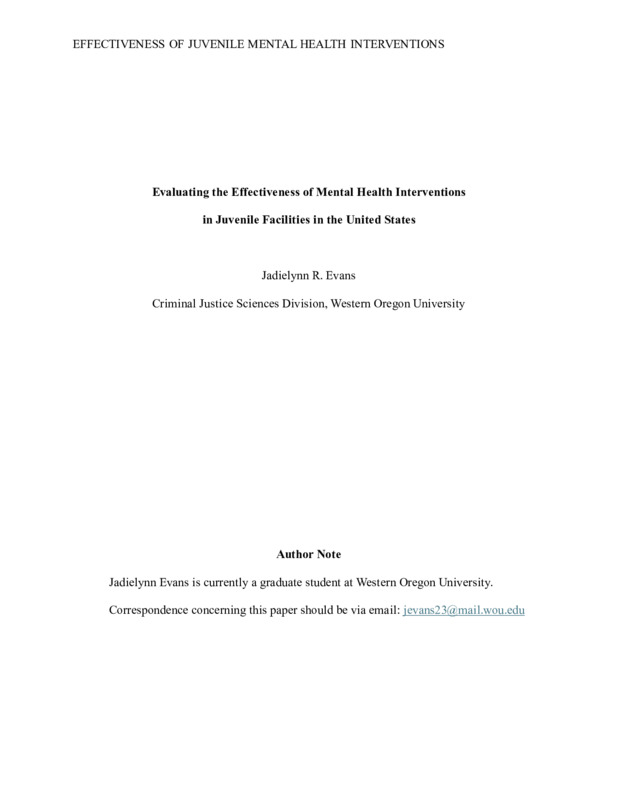 Evaluating the Effectiveness of Mental Health Interventions in Juvenile Facilities in the United States