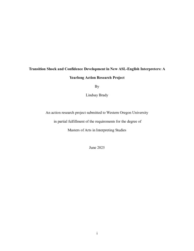 Transition Shock and Confidence Development in New ASL-English Interpreters: A Yearlong Action Research Project