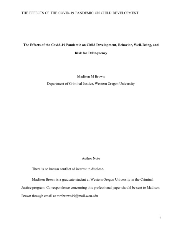 The Effects of the Covid-19 Pandemic on Child Development, Behavior, Well-Being, and Risk for Delinquency