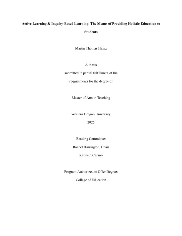 Active Learning & Inquiry-Based Learning: The Means of Providing Holistic Education to Students