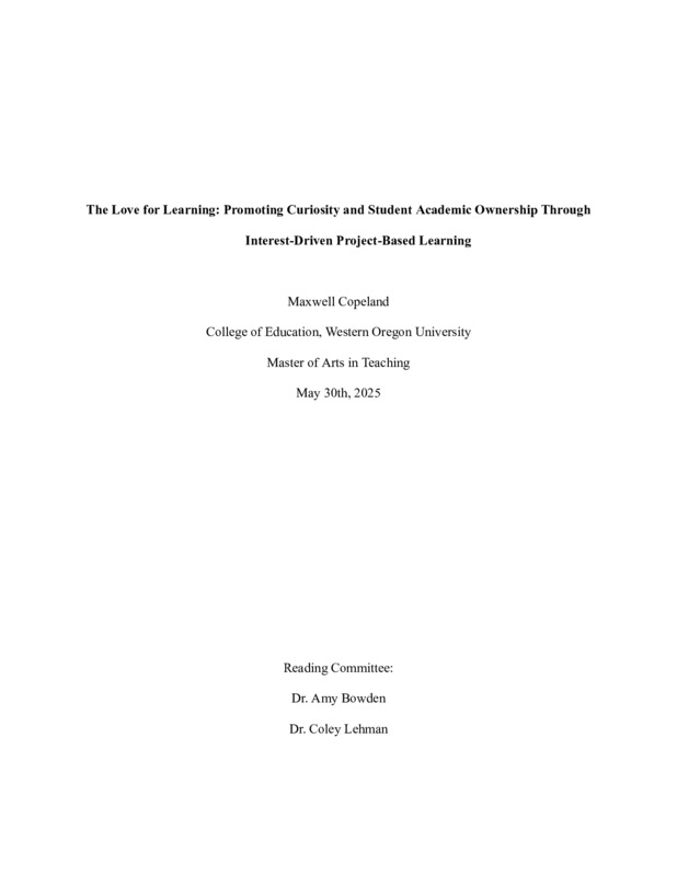 The Love for Learning: Promoting Curiosity and Student Academic Ownership Through Interest-Driven Project-Based Learning