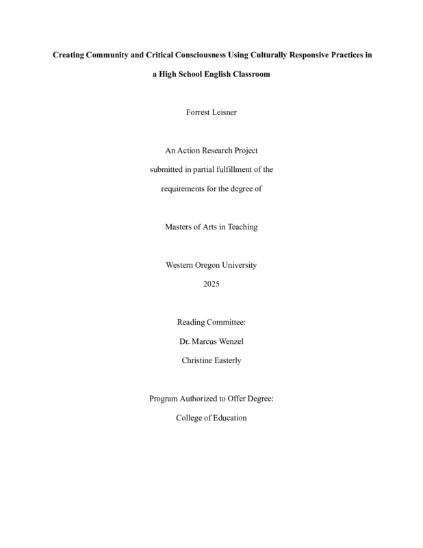 Creating Community and Critical Consciousness Using Culturally Responsive Practices in a High School English Classroom