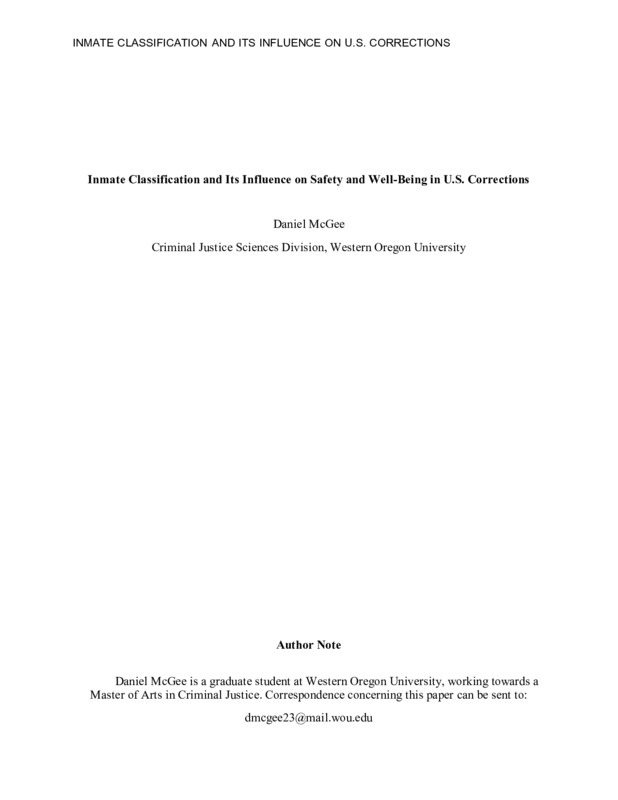 Inmate Classification and Its Influence on Safety and Well-Being in U.S. Corrections