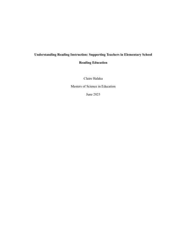 Understanding Reading Instruction: Supporting Teachers in Elementary School Reading Education