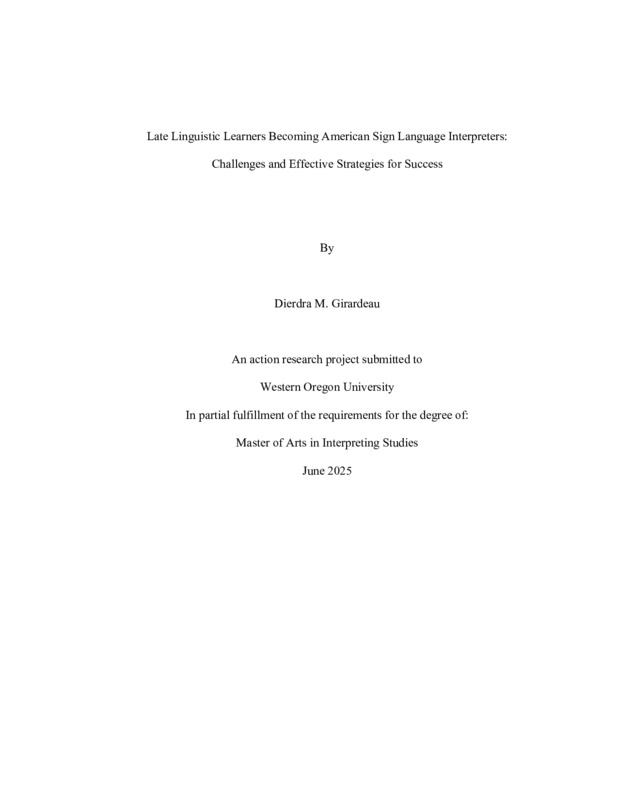 Late Linguistic Learners Becoming American Sign Language Interpreters: Challenges and Effective Strategies for Success
