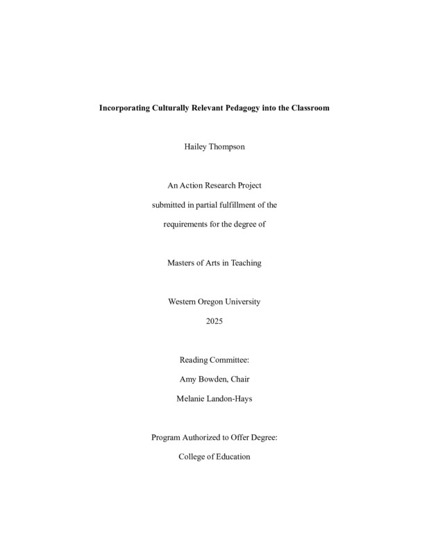 Incorporating Culturally Relevant Pedagogy into the Classroom