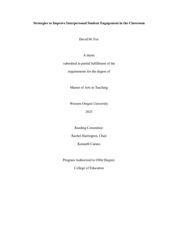 Strategies to Improve Interpersonal Student Engagement in the Classroom