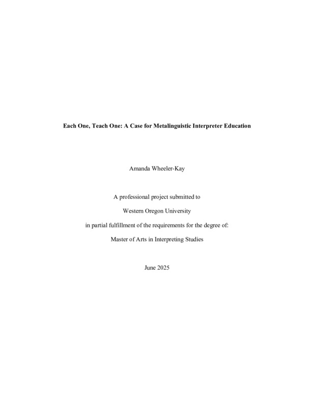 Each One, Teach One: A Case for Metalinguistic Interpreter Education