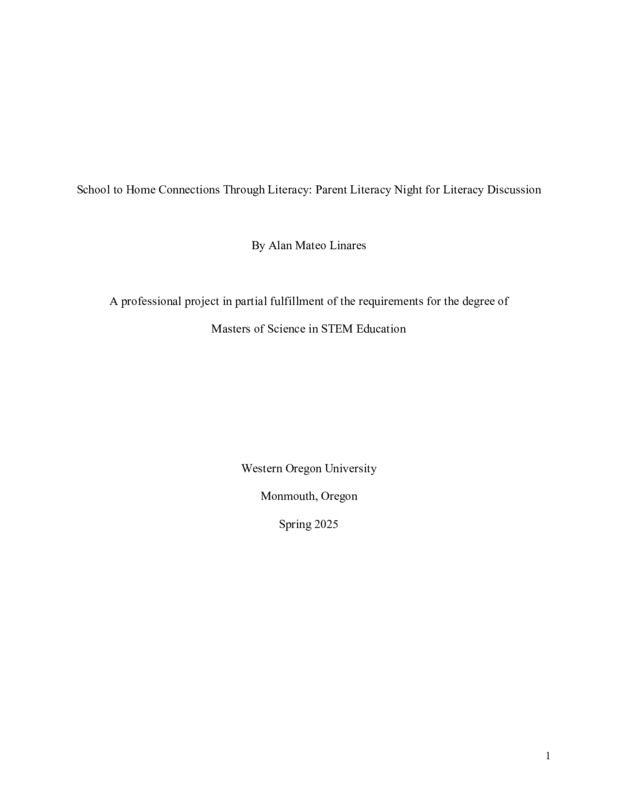 School to Home Connections Through Literacy: Parent Literacy Night for Literacy Discussion