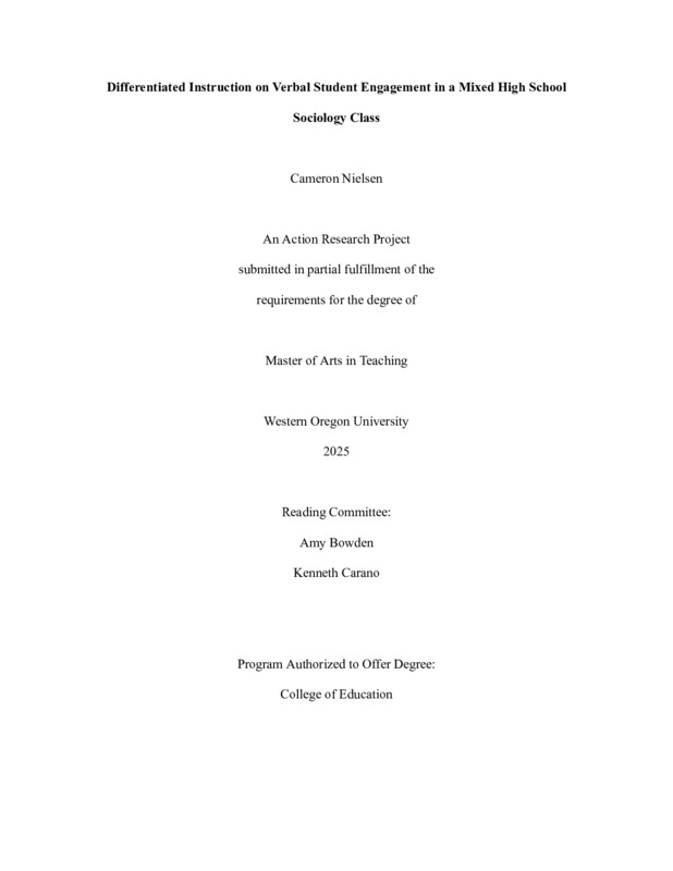 Differentiated Instruction on Verbal Student Engagement in a Mixed High School Sociology Class