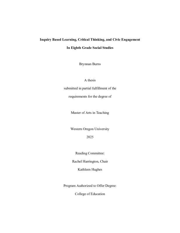 Inquiry Based Learning, Critical Thinking, and Civic Engagement In Eighth Grade Social Studies