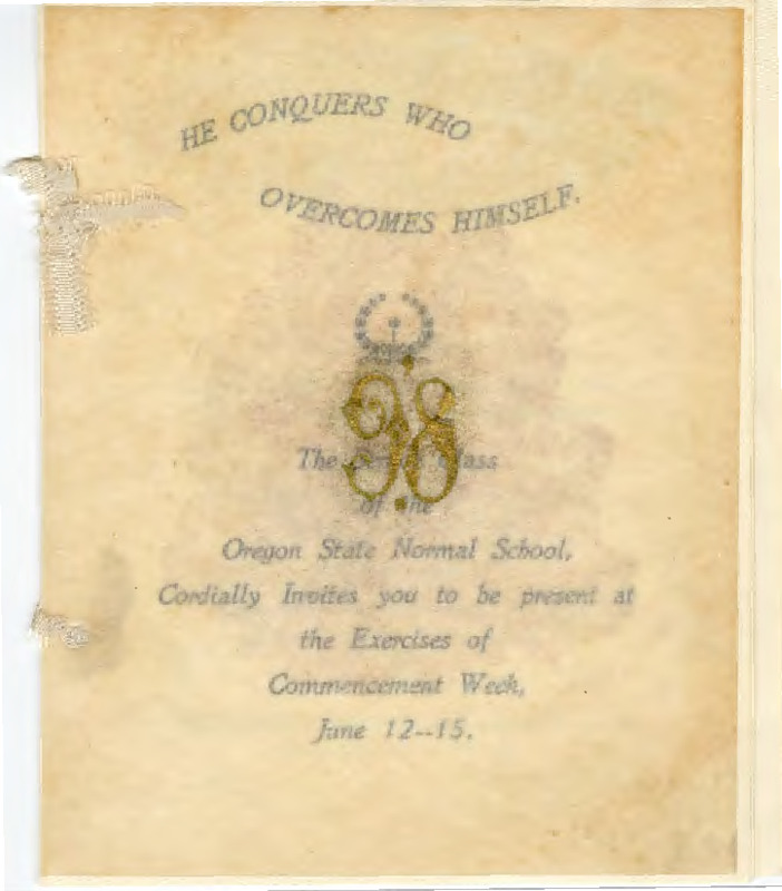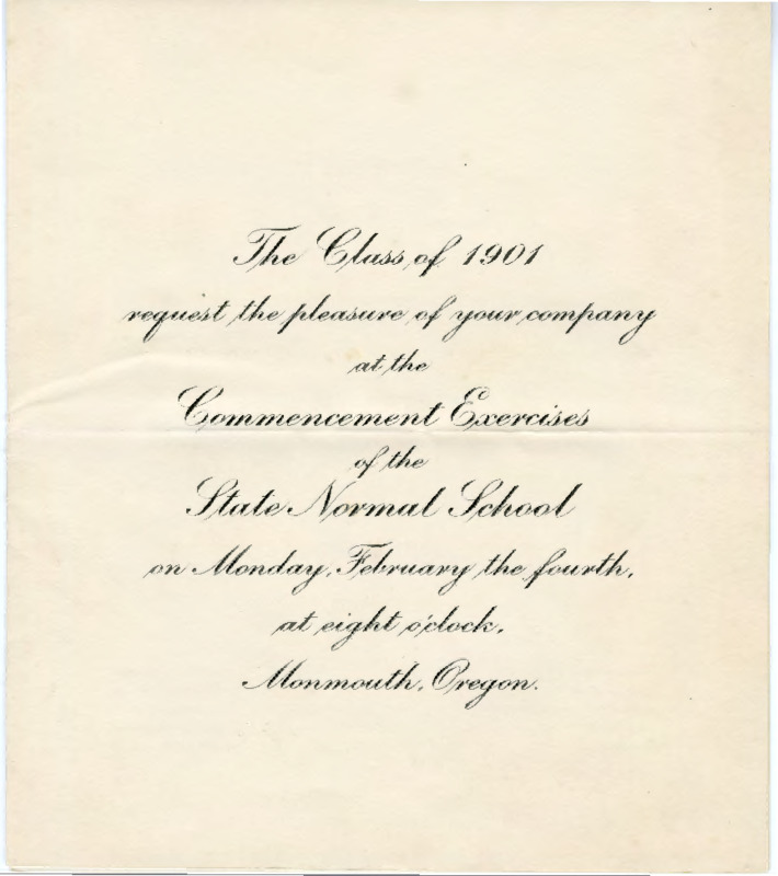 The Class of 1901 request the pleasure of your company at the Commencement Exercises of the [Oregon] State Normal School on Monday, February the fourth, at eight o'clock. Monmouth, Oregon.