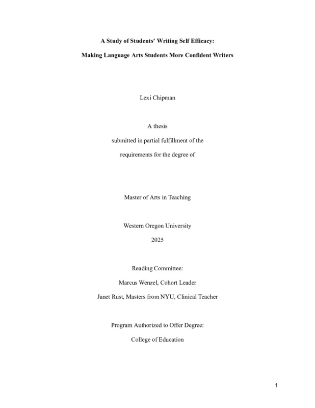 A Study of Students’ Writing Self Efficacy: Making Language Arts Students More Confident Writers