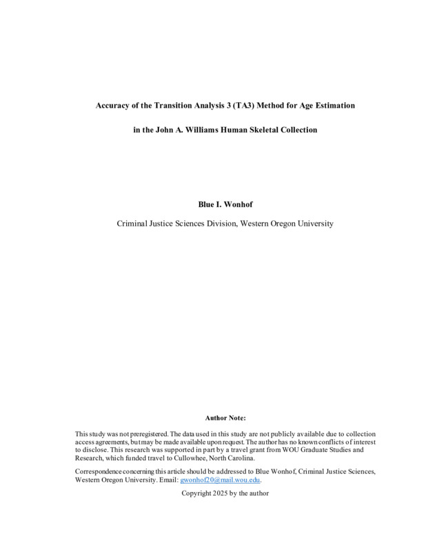 Accuracy of the Transition Analysis 3 (TA3) Method for Age Estimation in the John A. Williams Human Skeletal Collection