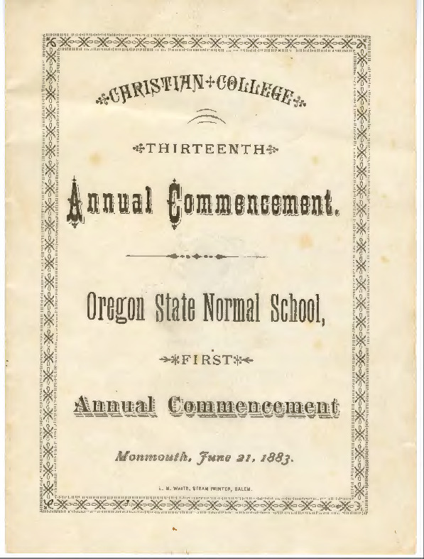 Christian College Thirteenth Annual Commencement. Oregon State Normal School First Annual Commencement. Monmouth, June 21, 1883.
