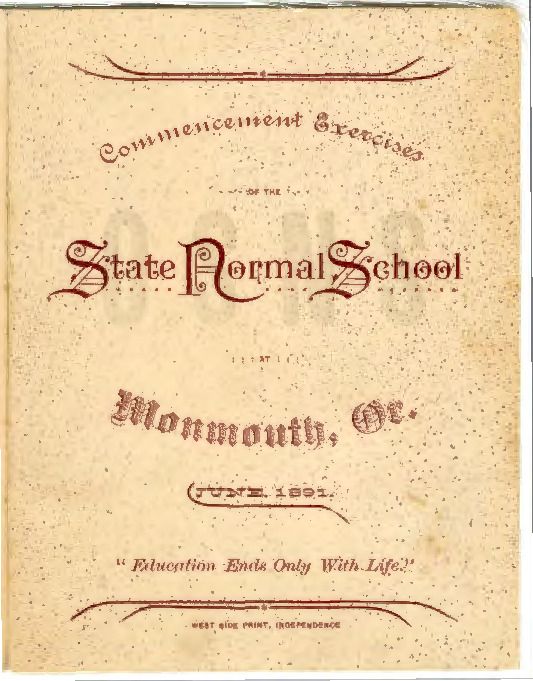 Commencement Exercises of the State Normal School at Monmouth, Or. June 1891.