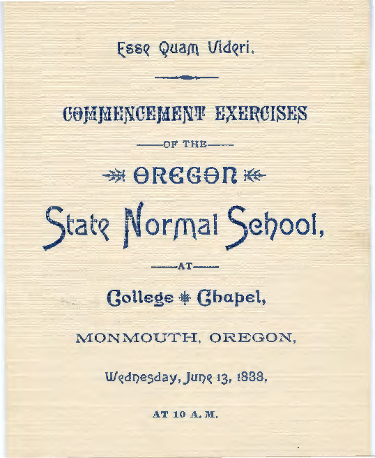Commencement Exercises of the Oregon State Normal School, at College Chapel, Monmouth, Oregon, Wednesday June 13, 1888.