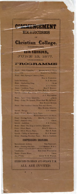 Commencement Exercises of Christian College. 11th Session, June 13, 1877.