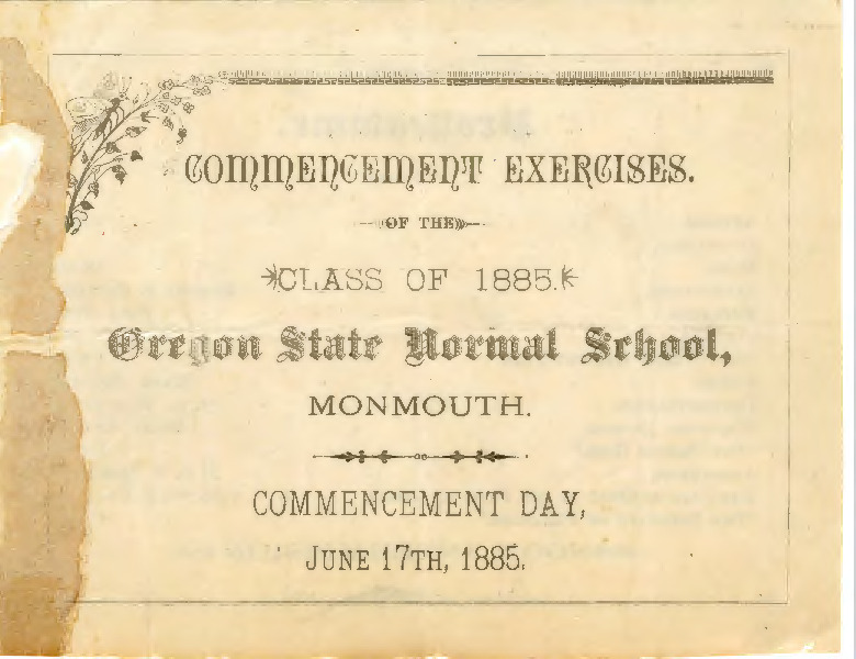 Commencement Exercises of the Class of 1885. Oregon State Normal School, Monmouth. Commencement Day, June 17th, 1885.
