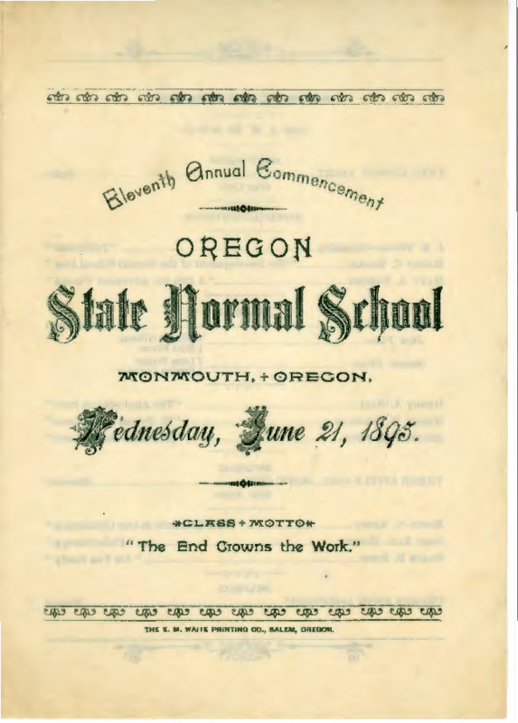 Eleventh Annual Commencement. Oregon State Normal School. Monmouth, Oregon. Wednesday, June 21, 1895.