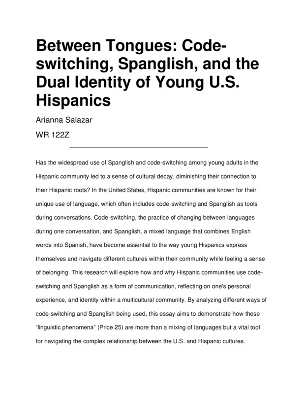 Between Tongues: Code-switching, Spanglish, and the Dual Identity of Young U.S. Hispanics