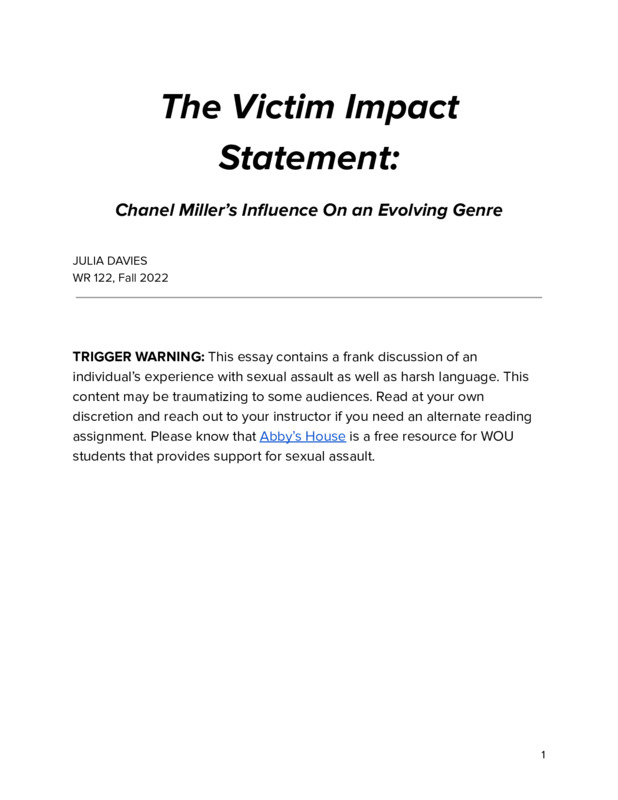 The Victim Impact Statement: Chanel Miller’s Influence On an Evolving Genre