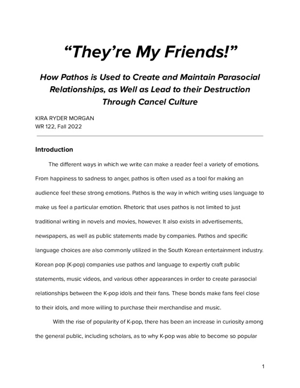 “They’re My Friends!” How Pathos Is Used to Create and Maintain Parasocial Relationships