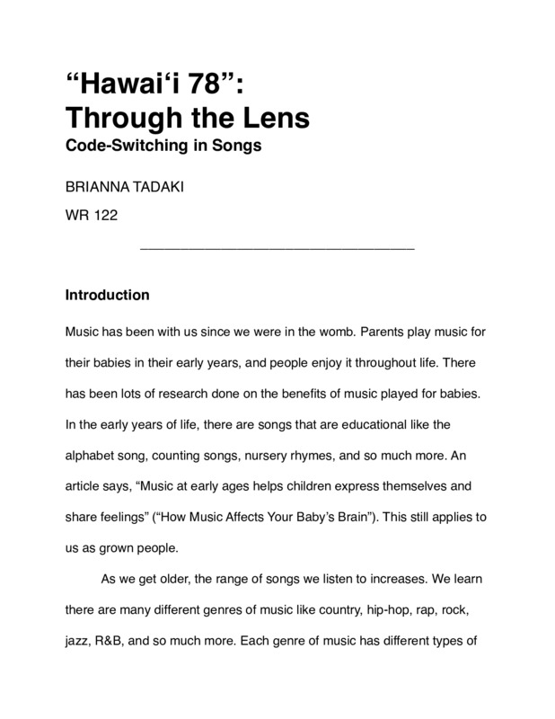 “Hawai‘i 78”: Through the Lens: Code-Switching in Songs