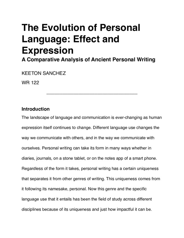 The Evolution of Personal Language: Effect and Expression, A Comparative Analysis of Ancient Personal Writing